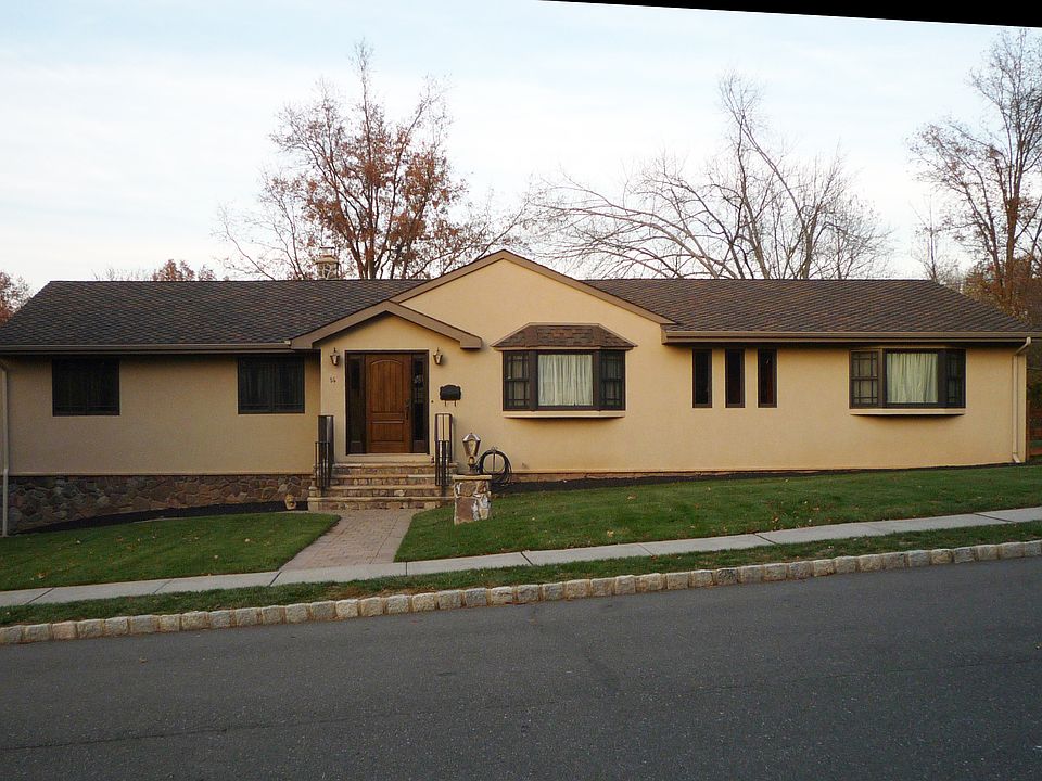 A spacious, airy single family stucco ranch home with an extended family suite on a half-acre corner property. Five bedrooms and 4 full bathrooms (one master bath and one senior shower). A large basement finished with stone tile, a full-size window well made for safe egress and a laundry room. Fenced yard, paver patio and walkways. Walking distance (1 block) to New York transportation (train or bus), high school, middle school, Montclair State University andvarious places of worship and shopping,. Roof, windows, and interior and exterior doors upgraded with superior materials during construction of addition in 2007, as well as other significant improvements. Plenty of storage space. Multiple heating and air conditioning zones.