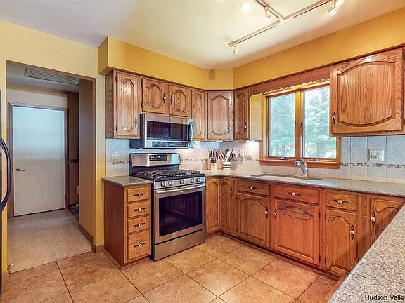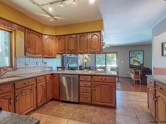 Idyllic hideaway just moments from the Village of Saugerties. Set on over an acre of land within the Bluestone Park subdivision is this move-in ready Cape Cod. Immaculately maintained, beautifully presented and with nothing to do, you can relax and indulge in this contemporary hideaway nestled in such a private setting. Mature trees completely surround the home, enhancing the privacy and providing lovely shade throughout the summer. You will feel instantly at home as soon as you pull into the oversized drive. Step inside where beautiful maple hardwood floors flow throughout the open concept living space and into the dining room. Lots of large windows allow an abundance of natural light to fill the home, enhancing the sense of space and creating a bright and welcoming ambience. The expansive 2,500 sqft layout offers 5 bedrooms and 3.5 baths, plus an open layout perfect for those who like to entertain. There are two master bedrooms to choose from; one downstairs for those who prefer single-level living and one upstairs for those who want to enjoy the views over the expansive yard. The kitchen and baths have all been updated with beautiful cabinetry, quality fixtures and a suite of stainless steel appliances in the kitchen. In the living room, a brick fireplace with a pellet stove insert warms the space and there is a separate dining room with views over the yard. Downstairs, the sprawling basement offers 9-foot ceilings and is ready for you to extend your living space, perfect for a home gym or office. An attached two-car garage ensures complete convenience. Step outside to the huge rear deck with built-in seating, perfect for entertaining friends. With sweeping views over your private greenspace that is enveloped by mature trees, this is also the best place to relax, soak up the sunshine and enjoy the peaceful outlook. You will love living only moments from the charming Village of Saugerties with shopping, restaurants and major services all available. The NYS Thruway provides quick access to a range of neighboring towns including Historic Kingston, Woodstock and Rhinebeck.