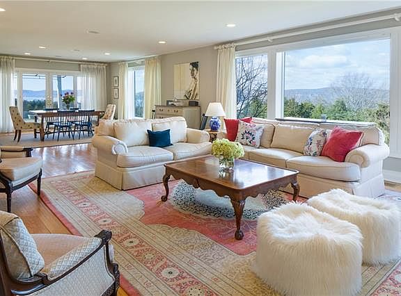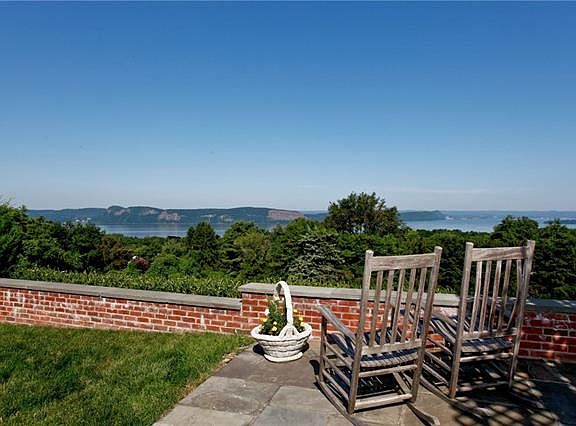 Available furnished or unfurnished. Landscape and architecture blend to spectacular effect at this hilltop residence artfully situated on 1.5 acres in the prized Scarborough estate area. The clean-line living spaces feature details of handsome wood floors, marble fireplaces, high ceilings and abundant French doors opening to the surrounding entertaining terraces. With river views taking center stage in the flowing and open living areas, the living and dining room offer a wall of glass and opposite fireplace. A comfortable family room with custom cabinetry and centered fireplace is a delight. A very spacious gourmet kitchen with center-island and multiple work areas opens to an expansive entertaining terrace with wisteria covered arbor continuing the vistas. The master suite with river views features separate