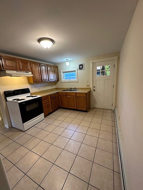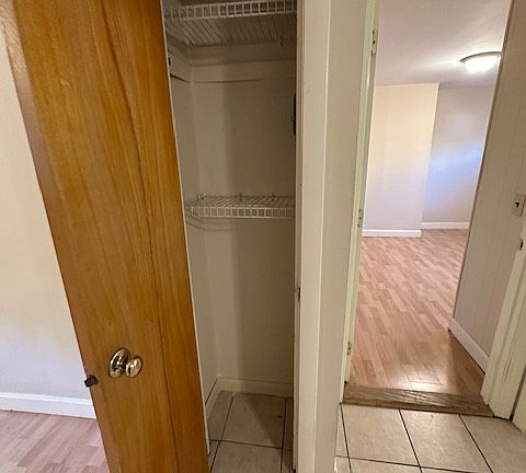 Desirable 1st floor apartment in Saco offering - eat in kitchen with oak cabinets, all wood and tile flooring (no carpeting ), and bath with a full tub /shower combo and a small rear deck. There is a laundry closet with a washer & dryer hook-up for a stackable in the apartment. Tenant to supply the W and D. No more lugging your clothes to the expensive laundromat!