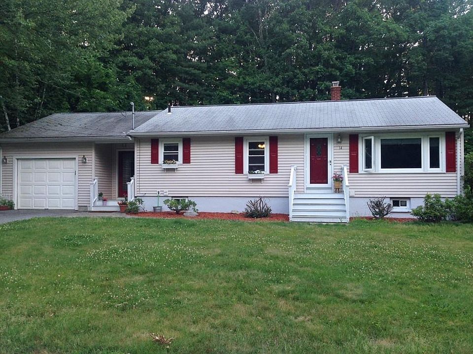 It will be easy for you to fall in love with this Low Maintenance Sunny Bright ranch. Just bring your furniture. Drive into the garage and access the mud room leading to the Freshly Painted home with three bedrooms, dining area, and living room. Hardwood Floors throughout. This yard is perfect for entertaining, fun and parties. Bring your book and Relax in the multi-level stone accented back yard. This home offers country living yet only 3 minutes to mass pike.