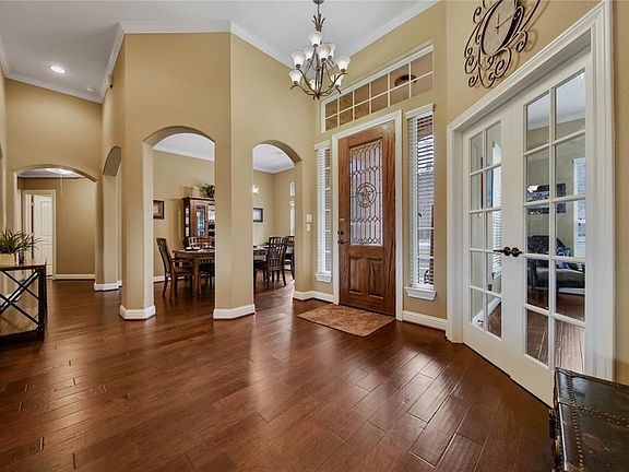 Magnificent 1 story home with a pool on 1/2 acre cul-de-sac lot with wooded backyard retreat. 4 Bedrooms, 2 1/2 bathrooms. Bed# 4 with French doors can be used as a study. The home features an open floor plan with high ceiling, crown molding and gorgeous wood floors throughout. Spacious kitchen with an incredible view to the pool and backyard. Kitchen with granite counters, breakfast bar and stainless-steel appliances. Large bedroom with tons of natural lights and incredible view to the pool. Cover Patio, built in outdoor kitchen with gas connection and fire pit perfect for gathering! Professionally designed landscaping with rock borders around all flower beds, and river rock borders around areas for easy maintenance. Large decking with Pavestone paversl! Whole House Generator! Sprinkler system! Electric iron gate with 2 control remote. Oversized 2 car garage. Pool added in 2018 with in-floor vacuum system (no need of Polaris). Dry in Harvey and other storms. Must see!
