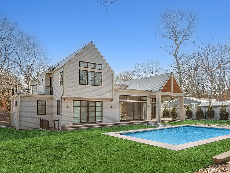 Rental Registration #: 25-121 AVAILABLE MD-LD 2026...Be among the first to rent this brand new 5 bedroom home in the Clearwater Beach Association section of East Hampton with all new furnishings. The first floor features a contemporary open floor plan with high ceilings, walls of windows overlooking the back yard and pool, a large beautiful great room with a gas fireplace, dining room, chef's state of the art kitchen with a 4 seat island, one of two primary ensuite bedrooms, a large ensuite guest bedroom and a half bath. The second floor has the second ensuite primary bedroom as well as a large ensuite guest bedroom. The beautifully finished lower level features high ceilings, a media room, office, a large ensuite bedroom and laundry. The relaxing back yard has a covered porch for shade and outdoor dining and a heated gunite pool. The private Clearwater beach Association has it's own private bay beach, a marina, kayak and canoe racks, a children's play area, BBQ area, bocce ball court, a picnic area and more. Relax and enjoy the summer in the luxury of this wonderful new home. [[Rental Registration # 25-121]]