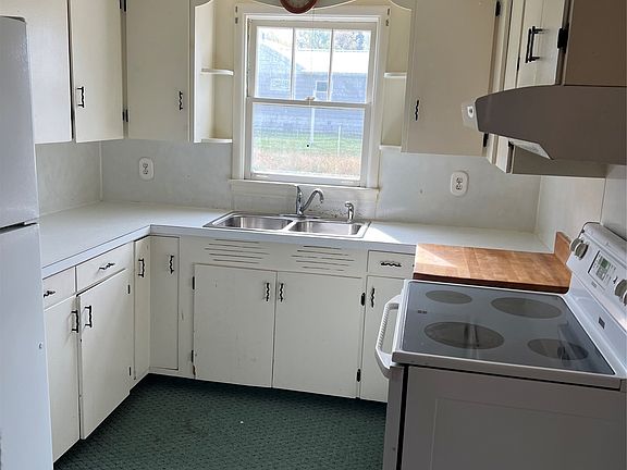 Set back from the street this could be a great starter home, rental, or retirement home. All on one level, this 2 bedroom, one bath home has a spacious living room, kitchen with ample cupboards and main floor laundry area. With metal siding, facia, and roof, and metal siding and roof on garage, it helps ease exterior maintenance.