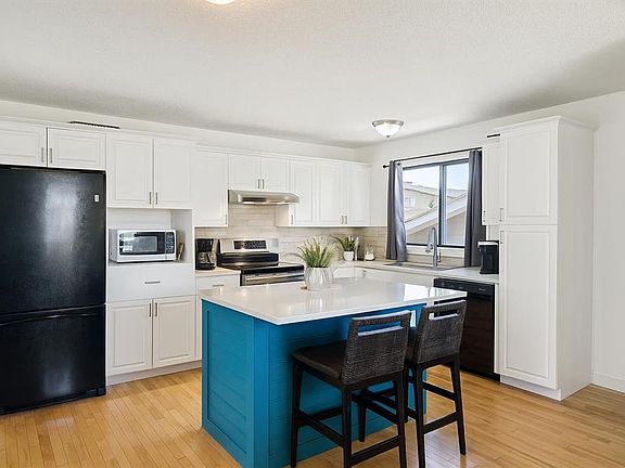Step into comfort and style with this charming and well-maintained bi-level home, ideally located in the desirable community of Glenbow. Thoughtfully updated with modern finishes and designed for functionality, this property is perfect for families seeking space, convenience, and timeless appeal. Upstairs, you'll find a bright and welcoming WHITE KITCHEN complete with QUARTZ COUNTERTOPS and a handy SPICE DRAWER—ideal for everyday cooking. The spacious living room features a cozy WOOD-BURNING FIREPLACE, creating a perfect spot to relax, while CENTRAL AIR CONDITIONING ensures year-round comfort. The main level offers three bedrooms, including a generous primary suite with its own 3-piece ENSUITE featuring a stylish TILED SHOWER. Major updates such as a NEW ROOF, HOT WATER TANK, and FURNACE add extra value and peace of mind. Downstairs, the FULLY FINISHED SUNSHINE BASEMENT is flooded with natural light and offers versatile living space, including a large REC ROOM, fourth bedroom, 3-piece bathroom, laundry room, storage area, and a handy COLD ROOM—great for families or guests. Enjoy outdoor living in the landscaped backyard, complete with a DECK, PAVING STONE PATIO, and BUILT-IN STORAGE BENCHES—ideal for entertaining or relaxing. An OVERSIZED DOUBLE DETACHED GARAGE with LANE ACCESS provides ample parking and room for projects or storage. Located just minutes from schools, parks, shopping, and Cochrane’s scenic pathway system, this move-in-ready home combines location, lifestyle, and livability. Don’t miss your chance to make it yours!