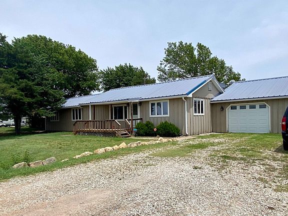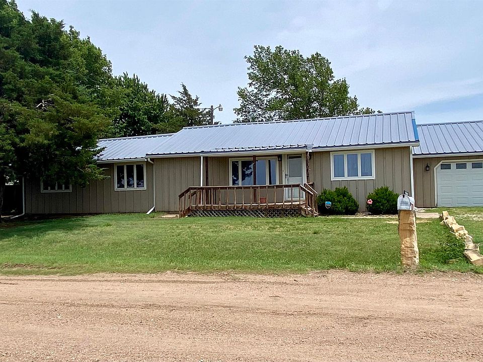 Looking for a country home with a view? This is it!! Priced just under county appraisal value and sitting on just over an acre, this all electric 3 bed, 1 bath home has fresh paint throughout. The large master bedroom boasts two closets, recessed ceiling, and a large window facing the west. The oversized double car garage is heated and cooled and includes an extra room that could be used as a man cave, she~shed, shop space...the possibilities are nearly endless!! Wanting to grow your own vegetables? There is plenty of space in the back yard to carve out an area for a garden!! Enjoy the beautiful Kansas sunsets from your front porch when you make this house your new home!!!