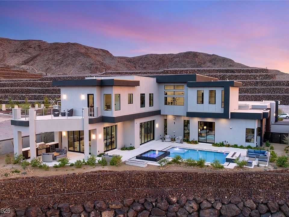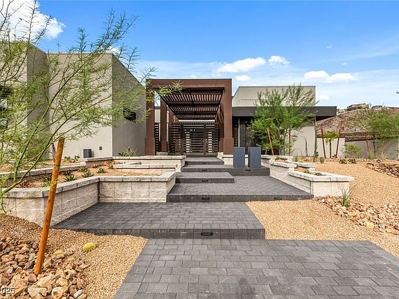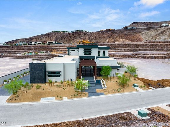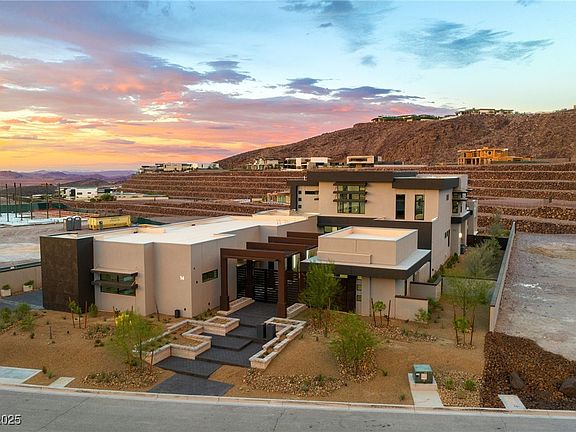 An architectural masterpiece in the guard-gated enclave of Ascaya, 14 Sanctuary Peak Court embodies modern luxury and resort-style living. A private courtyard with a glowing fireplace leads to a dramatic pivot entry, unveiling soaring ceilings, a floating staircase, and a porcelain-clad fireplace wall. Expansive pocket doors open to a resort-style pool, spa, fire features, and outdoor kitchen. The chef’s kitchen boasts top-tier Thermador appliances. Designed for grand entertaining, the home offers a state-of-the-art movie theater, a formal dining room with wine-whisky bar, and seamless indoor-outdoor flow. Two lavish primary suites, one on each level, feature spa-inspired baths and custom closets. A private casita, dual laundry rooms, and a six-car garage with marble-finish epoxy flooring complete the estate.This luxury home is available fully furnished. Ascaya residents enjoy access to a world-class clubhouse with Olympic pool, fitness center, and sweeping views of the Las Vegas Strip