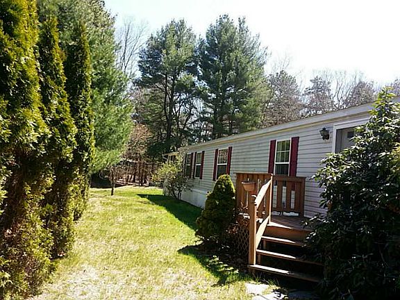 Custom built, gorgeous single wide home. Open floor plan w/ vaulted ceilings, master suite, eat in kitchen, living room with sliders, 2 additional beds and second full bath. Central air. Watch the deer from your backyard. Leased land.