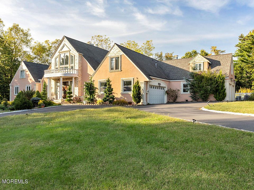 Welcome to 14 Schanck Road, Holmdel — a spectacular custom residence offering approximately 6,559 sq. ft. of living space on 1.15 acres of private, serene grounds. Perfectly perched atop a hill overlooking a picturesque farm, this home combines scenic tranquility with luxury living. Designed with versatility in mind, the residence is ideal for multigenerational living or a mother-daughter setup. Inside, you'll find 5 spacious bedrooms, 5 full baths, and 2 half baths, along with a 4-car garage for ultimate convenience. The thoughtfully designed layout seamlessly balances everyday comfort with incredible entertaining possibilities — family parties of 120+ guests have been hosted with ease. The chef's kitchen was fully remodeled in 2022 with brand-new appliances and flows beautifully into the main living areas. At the same time, all-new hardwood flooring throughout the entire home (completed in 2022) elevates the interior with warmth and sophistication. The full walk-out finished lower level expands the living space even further, featuring a full bath, kitchenette, and a complete gym ideal for guests, extended family, or recreational use. Entertainment and lifestyle amenities abound, including a private movie theater room, a smart-home system with advanced connected features, and a stunning outdoor oasis. The backyard showcases a concrete kidney-shaped pool with brand-new equipment, a custom paver patio, and ample space for gatherings both large and intimate. A long, circular paved driveway with Belgium block adds to the estate-like feel, leading you up to this hilltop retreat. Here, you'll enjoy both privacy and scenic views a rare combination in the heart of Holmdel. Whether for everyday living or hosting unforgettable celebrations, this home delivers a lifestyle unlike any other.