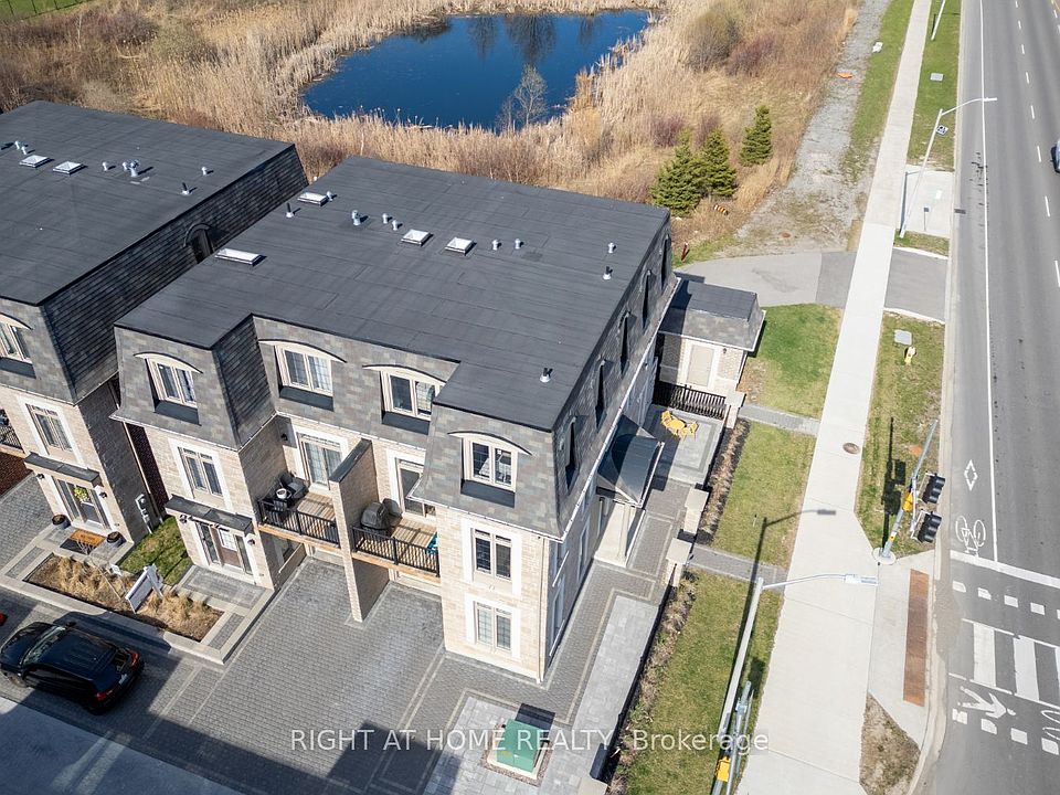 Welcome to 14 Seagrave Lane, a bright, corner semi-detached home offering 2,315 sq.ft. of stylish and functional living space. Exquisitely decorated and thoughtfully upgraded, this residence features 3 spacious bedrooms, a versatile den, 4 bathrooms, and a dedicated home office nook, all with sweeping panoramic views of the ravine and pond. Inside, you'll find hardwood flooring, quartz countertops, extended upper kitchen cabinets with pantry, and tall upgraded doors throughout. The 10-ft ceilings and 7" upgraded trim add a sense of scale and elegance, while the gas fireplace with a stunning stone accent wall creates warmth and sophistication. Designed for both comfort and convenience, the home includes pot lights throughout and a walkout to a beautifully landscaped yard featuring a new interlocking stone patio (2024). Smart storage abounds, with a custom coat and shoe organization area, craft cupboard with adjustable shelving, and custom closets in every bedroom. Additional highlights include a built-in wine rack with barrel display and modern ceiling fans. Perfectly situated in a prime location, just minutes from top-rated schools, parks, shopping, amenities, and with quick access to Highways 401, 407, and 412. Visitor parking is conveniently available for guests.