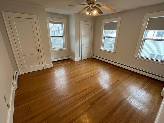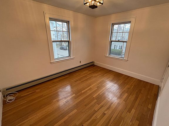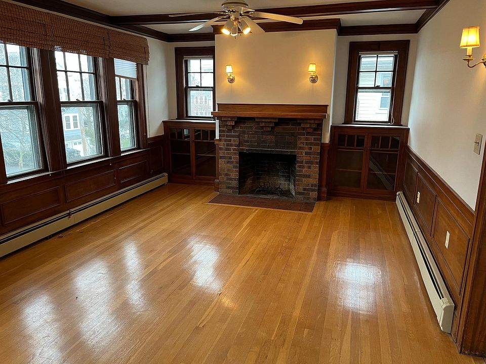 Refreshed 2nd floor apartment in one of Belmont's best neighborhoods, Harvard Lawn. This unit has hardwood floors throughout and has been freshly painted. New windows to be installed prior to occupancy. Bright living room with builtins and brick decorative fireplace. Formal diningroom with wainscoting and built in hutch. Kitchen has new granite countertops and updated stove. Three good sized bedrooms with an oversized back bedroom. Tiled full bath. Two car parking including one garage spot. Laundry in the basement. Close to Grove street park and 73 bus line. Available 5/1 or later. Tenant responsible for oil, electric and snow removal. Lessor responsible for water/sewer and landscaping. First, security and broker fee required upon acceptance. (3 months up front).