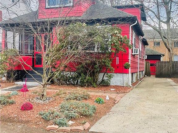 Located just three streets from Park Ave., Cranston, and around the corner from highway access, and Roger Williams Park and Zoo. Charming, bright, lovingly maintained 1920s Bungalow with all its original doors, skeleton keys, and hardware. columns, built-in wood cabinets with glass doors, wood flooring, and metal enameled kitchen cabinets. This cozy home has a first-floor bedroom, living room, dining room, large eat-in kitchen, back door mud room, and full bath on the first floor. Three bedrooms were added to the second floor in 1925. Enjoy the enclosed screened-in front porch or the back deck in your private, treed, fenced-in yard. Gates to the detached two-car garage were just replaced, and the garage has its own electrical panel. In addition, there is room for four cars in the driveway. The basement is wide open, except for a large walk-in cedar closet. Gas heat conversion, with tankless hot water, updated electrical circuit breakers, and all windows have been replaced.
