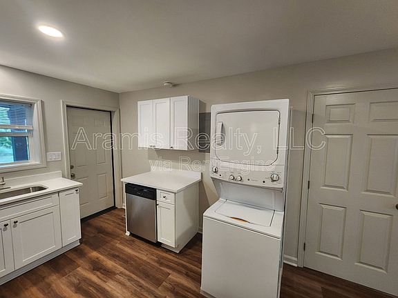 - The fully renovated kitchen showcases quartz countertops, gleaming stainless steel appliances such as a gas stove, refrigerator, microwave, and dishwasher, plus a sleek disposal and a stacked washer/dryer combo for ultimate convenience.