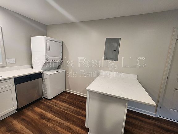 - The fully renovated kitchen showcases quartz countertops, gleaming stainless steel appliances such as a gas stove, refrigerator, microwave, and dishwasher, plus a sleek disposal and a stacked washer/dryer combo for ultimate convenience.