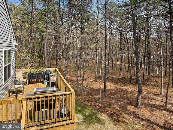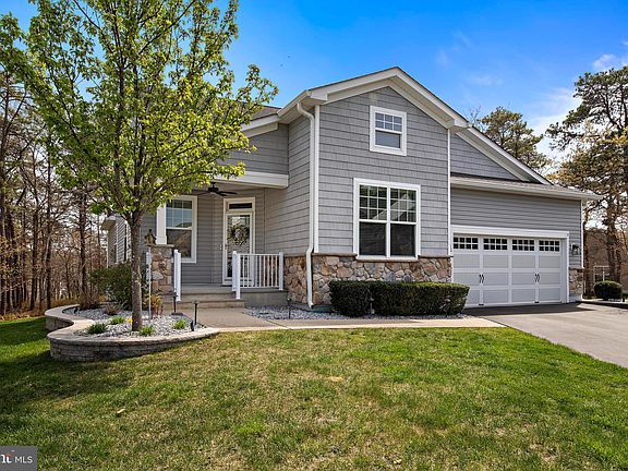 Welcome to this beautiful 10-year-young ranch in the desirable Four Seasons at Harbor Bay 55+ community—on the market for the first time! Tucked away on a quiet cul-de-sac with peaceful wooded views, this upgraded three-bedroom, two-bath home with a full basement and 2-car garage offers the ideal layout for comfortable, stylish living. A charming front porch invites you in, where warm hardwood floors flow throughout the main living areas. The formal dining room features an elegant tray ceiling, perfect for entertaining. The gourmet kitchen is a true showstopper, with subtle yet colorful granite countertops, antique white cabinetry, newer stainless-steel appliances, and a large center island with seating for six. A sunny breakfast nook leads into the spacious family room, complete with a cozy gas fireplace, built-in entertainment area, and sliding glass doors to the back deck. Enjoy outdoor dining and relaxation on the generously sized deck, all while soaking in the serenity of the wooded backdrop. The primary suite is a private retreat, featuring a large walk-in and a luxurious en-suite bath with black-and-white tiled flooring, dual vanities, a dedicated makeup station, a large shower, and space for a settee. The second bedroom is bright and airy, while the third bedroom—with a closet—offers flexibility as a home office or guest room. The second full bath includes a tub/shower combo and tasteful tile flooring. The full basement downstairs will delight the buyers who need extra storage or need a place for the kids and grandchildren to gather. A large space with rooms for seating areas and a gym, there is also a large storage room too. This vibrant community offers a stunning clubhouse, indoor and outdoor pools, fitness center, and an active calendar of events. Located just minutes from two local golf courses, the beaches of LBI, and within easy reach of Atlantic City, Philadelphia, and even New York City, this home truly has it all!