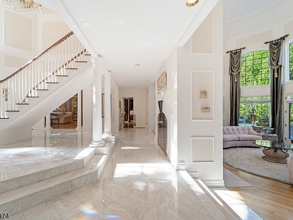 Set on a peaceful cul-de-sac with direct views of Lake Tappan, this distinguished French-inspired residence offers approx. 8,000 sq ft of refined living space. A leading entry introduces the home with timeless elegance, complemented by three staircases and an elevator that services all three floors for effortless access. The grand marble foyer opens to an expansive great room with a dual-sided fireplace, while the custom kitchen?enhanced with premium finishes?flows into a dramatic two-story solarium overlooking a grotted pool with waterfall, ideal for private relaxation or entertaining. A private main-level suite features dual sitting areas, dual walk-in closets, and a spa-style bath. The second level includes multiple bedrooms with shared baths, a dedicated media or game room, guest accommodations, and a full laundry room. Professionally landscaped with mature plantings, this exceptional home blends timeless design and modern comfort in one of Old Tappan?s most sought-after settings.