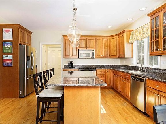 - Kit Dscrp: Pantry, Dining Area, Flooring - Hardwood, Countertops - Stone/Granite/Solid, Deck - Exterior, Kitchen Island, Stainless Steel Appliances, Open Floor Plan, Recessed Lighting, Slider, Exterior Access, Bathroom - Half, Lighting - Pendant