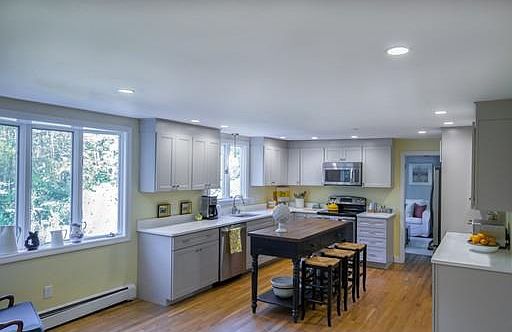 - Kit Dscrp: Flooring - Hardwood, Countertops - Stone/Granite/Solid, Cabinets - Upgraded, Stainless Steel Appliances, Recessed Lighting, Remodeled