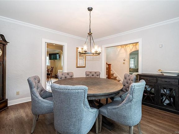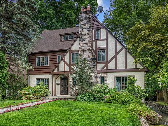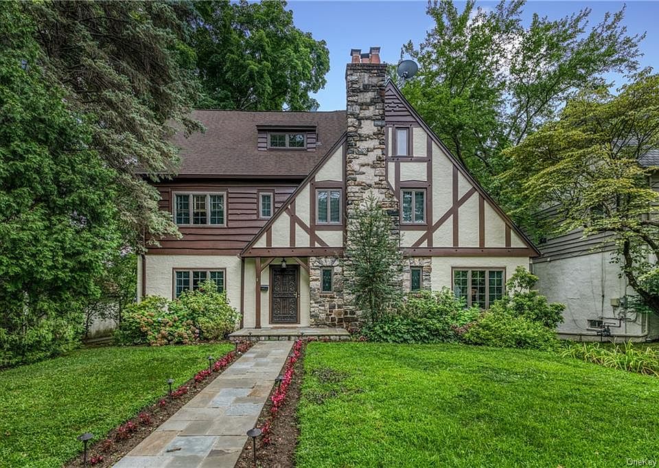 Beautifully updated 5BD/3.5BA Tudor in sought-after Wykagyl Park is an excellent, economical opportunity for buyers seeking outstanding space and a great local community. Hardwood floors, tall ceilings and attractive millwork throughout. Enjoy a large living room with handsome built-ins and a fireplace, or host gracious dinner parties in the formal dining room. The updated eat-in kitchen impresses with custom cabinetry, granite countertops and stainless steel appliances, plus island counter and breakfast area seating. The owner's suite features an en suite spa bathroom with a jetted tub, glass shower and double vanity. Secondary bedrooms are spacious, and bathrooms have been updated. Central HVAC and an expansive finished basement with a laundry closet complete the home. The flat, fenced yard offers stone patios, a lawn and lovely wooded surroundings. Gorgeous tree-lined street close to parks, country clubs, houses of worship, parkways and Metro-North train station.