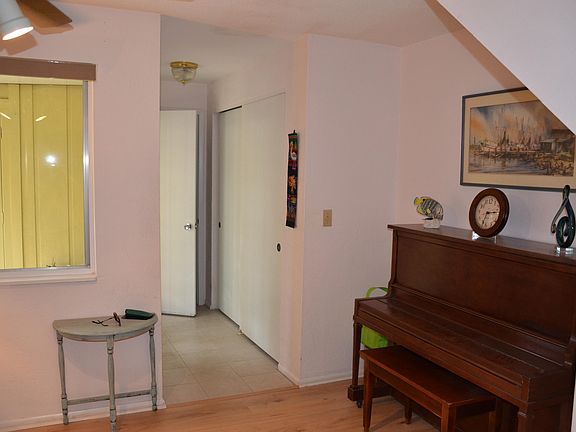 Rare opportunity to own in popular Port Orange in this price range! Well maintained two bedroom, two full baths, formal dining, kitchen nook, living room with cathedral ceilings, skylights and a large sunroom with serene views of the walking trails and mature trees. Large laundry room, screened porch with built in storage room. Plenty of storage throughout. One bedroom down and large bedroom upstairs with private bath. New laminate flooring throughout living areas and new carpet in bedroom downstairs. Fairly new A/C. Sought after 55 adult community offers Publix , Port Orange Pavillion, Lowes and more a short distance away. Easy access to I-95 and nearby restaurants. Perfect vacation home or convenient full time living. Don't wait it will be gone!