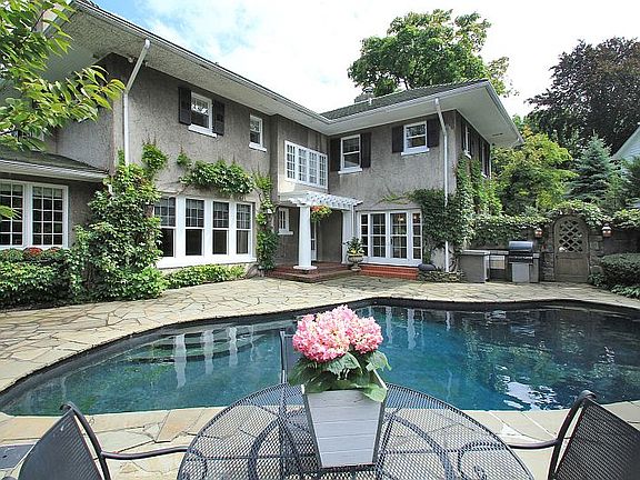 Old World charm abounds in this gracious Mediterranean located on cul de sac in the Afterglow section. Large inviting rooms, gleaming HW floors, 3 fireplaces, EIK with French doors to Guinite pool. Blue stone patio surrounds heated pool. Great flow, perfect for entertaining. Beautifully landscaped on wide property with sprinkler & lighting systems. First floor features foyer, large living room w/ FP, Family room w/ FP, Dining room w/FP, Den/Office with beautiful windows, EIK with granite countertops, butlers pantry and powder room. Central air. 4 bedrooms, 2 full baths plus master bath w/ whirlpool tub. Please note 5th bedroom currently used as dressing room for Master. Easily converted back. Finished basement with laundry room. Home warranty transferable to new buyer. Decommissioned oil tank has been removed.