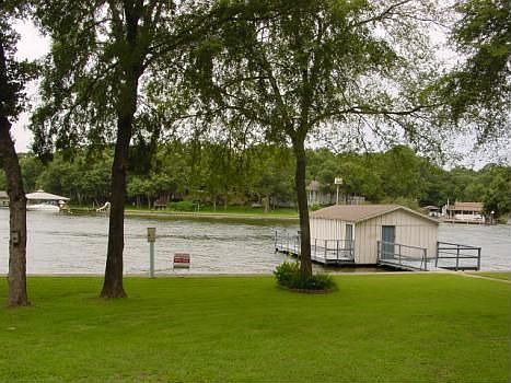 This spacious lake home site on two large waterfront tree canopied lots. Wide water views of large deep cove close to open water. Open kitchen and living areas with wall of windows to view parklike waterfront setting. Master down and two wbfp's. Three car garage plus RV size garage. Super storage for boats, Rv's and toys. 9 hole golf course home addition. Very exclusive and attractive community.