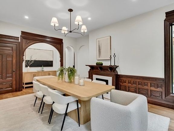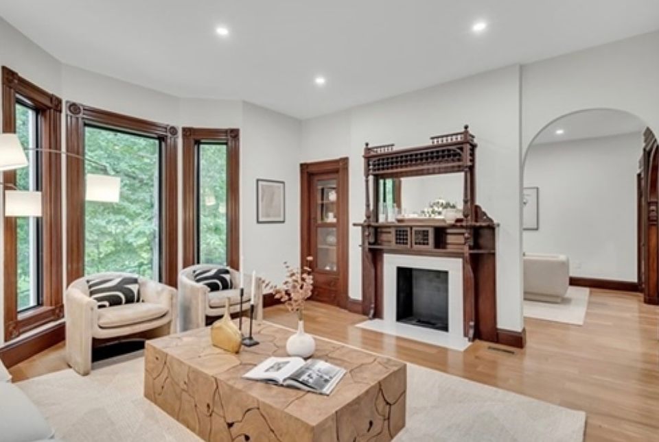Available now! Be the first to live in this fully renovated extraordinary 4 bed 5 bath Victorian townhouse which blends historic charm with the confidence of brand-new systems. Soaring 10-foot ceilings and oversized windows flood the home with natural light. At its heart is a magnificent hand-carved staircase, a true architectural centerpiece showcasing timeless craftsmanship. The formal dining room features a restored decorative fireplace and elegant millwork that bridges old-world detail with modern style. The kitchen offers a Wolf cooktop, Bosch appliances, and striking quartz countertops. Spa-like baths include floating vanities, glass walk-in showers, and backlit mirrors. The finished basement provides flexible space for entertainment or a potential 5th bedroom. At the top, a turreted room reveals sweeping city views - a serene retreat for work or relaxation. A garage with EV charging station completes this rare, fully modernized historic home full of character and enduring beauty