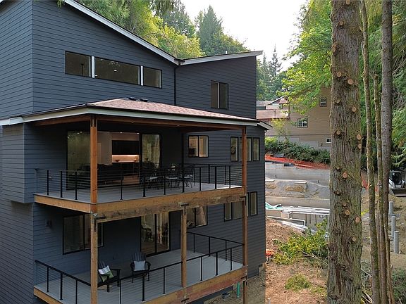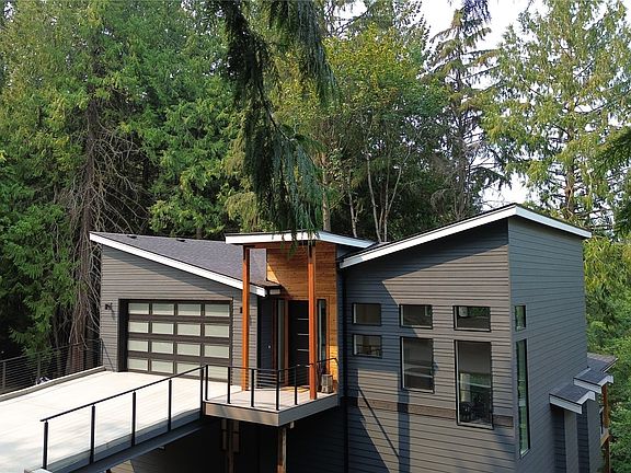 Remarkable modern designed home located just steps from the trail access to Morning & Afternoon Beaches (2 waterfront beaches on Lake Whatcom). The home has a view of the lake from both the main & lower deck, & filtered views of the park below from nearly every room in the home. Enter the home to a grand great room, with 20 foot ceiling & an electric wall fireplace as the centerpiece. The kitchen is open to the living room, has custom white cabinet package, walk-in pantry, & a quartz large bar area for entertaining / dining. Large separate dining room as well. The den/office is also on the main level. The primary suite is on the view side of the home, has a gorgeous & roomy en-suite bath & walk-in closet. Air conditioned - Car charger.