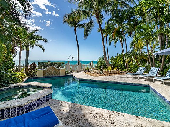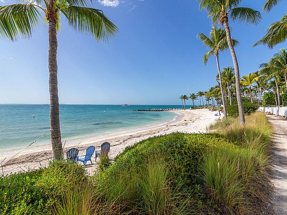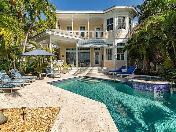Centered on idyllic, private Crescent Beach on world famous Sunset Key Island, the location of this three-bedroom plus den, two-and-a-half bathroom home is the best of the best. The tastefully done home features a well-appointed kitchen plus formal dining room, plentiful, large glass doors and windows, large balconies at rear and front of home on lower and upper levels, gorgeous oceanfront pool with built-in spa, additional private deck with spa, main-level hardwood flooring, warm island decor throughout and so much more. This fine home makes a ideal full-time or seasonal home plus and also features an excellent monthly vacation rental history.