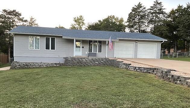 Looking for a pet-free, non-smoking lake home with a boat slip? This is it - in the golf-cart friendly Kimberling Hills subdivision! Immaculate, turn-key, move-in condition, 3 bedroom, 2 bath home at an outstanding price. Incredible attention to detail in this beautifully remodeled home with all new wood floors throughout living areas. Remodeled kitchen with Kraftmaid soft-close cabinets and sink base with Coreguard to safeguard your base from water leaks or spills, including a large pantry cabinet, one piece 9 ft no seam quartz countertop with bar that seats 6, tiled backsplash, huge, 10-inch deep, high-end Ruvati 33 x 22 inch double kitchen sink and all stainless steel appliances. French doors with built-in blinds lead to an extra-large 22 x 10 recently stained covered deck with a large fenced yard that includes double gates and walk through gate. Perfect set up for those work from home folks! Guest bedroom has a wall mounted computer desk with wall-mounted tv & 2 computer monitors. 2nd guest room also includes wall mounted tv & 2 computer monitors. Master bedroom also includes a wall-mounted tv! Master bath totally remodeled with walk in shower, custom vanity with quartz top and custom large linen cabinet and Johnny cabinet, double doored, fully mirrored medicine cabinet, tiled floor & walls. Both bathrooms have new water-saving toilets. 4 ceiling fans & all custom window blinds included. To make life easier and safe - home includes a Nest smart thermostat, Ring Doorbell, front & rear automatic sensing security lights and additional security light. Oversized 27 x 24 ft garage with utility sink and extra long & wide cement driveway when family and friends stop by. Garage has MyQ smart garage door opener which allows you to open & close the overhead doors from anywhere in the world with your phone. Attic access includes drop down stairs for additional storage. Large partial basement area for workshop, storage & protection from storms. Boat slip for addtl $$.