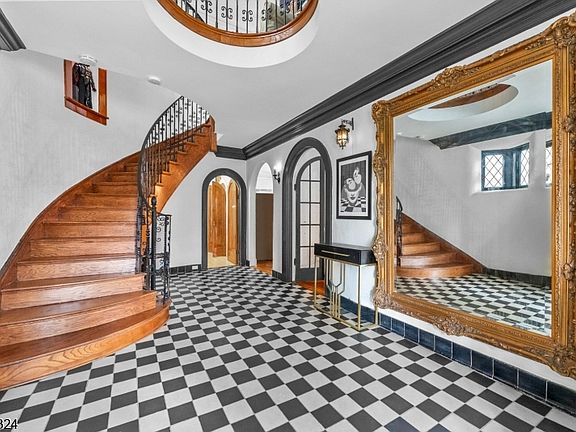 Rich in history and architectural character, this 1923 Montclair residence was designed with scale, craftsmanship, and detail rarely found today. The stately brick exterior and likely slate roof open to a grand foyer with a sweeping wood staircase, dramatic chandelier, solid arched wood doors, and original crown moldings. Distinctive period touches include black-and-white tile, vintage light fixtures, ornamental stonework, ironwork accents, and unique details such as a niche on the stair landing and a hidden under-stairs door.Offering approx. 3,500 sq ft across three finished levels plus a partially finished basement, the layout includes 5 bedrooms, 2 full baths, and 2 half baths. Highlights include a bath with body sprays and a separate clawfoot tub. Modern upgrades balance the historic fabric, including a brand-new gas boiler (2023) with a separate hot-water system.The property's grounds feature decorative stone and statuary elements, complementing the home's original design. Located in commuter-friendly Montclair, this residence provides easy access to transit, shopping, and local amenities.This property combines provenance, architectural integrity, and long-term potential an opportunity to own a true piece of Montclair history while enjoying a lifestyle of lasting appeal. Photos have been edited for MLS purposes.