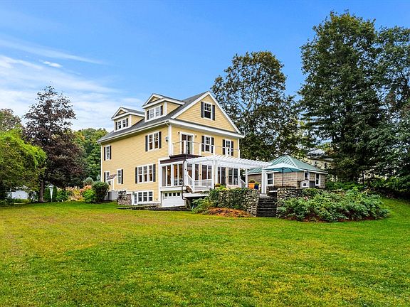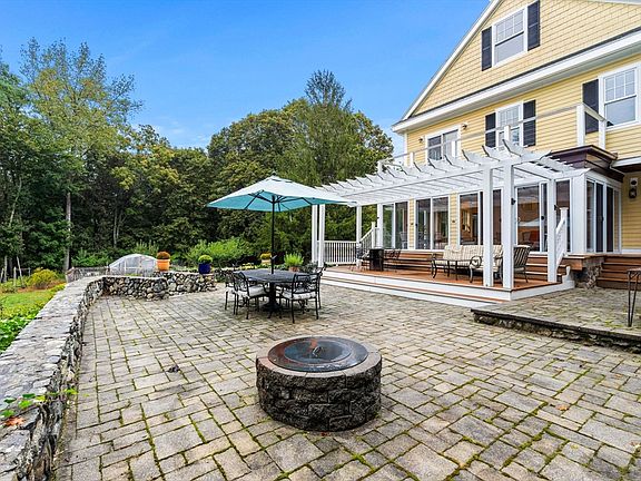 A Colonial Farmhouse, 2009 gut renovation and addition, located three blocks from Lexington Center. Set on a dead end street abutting acres of town owned conservation land with endless walking trails. This home sits on a 19,856 square foot lot and is being sold with an adjoining 34,356 sf totaling 54,212 sf of land. (The town has the 34,356 sq ft lot recorded as res undvlpble land. Buyers and buyer agents to perform their own due diligence on this matter. This 9 room house has formal living and dining rooms, country kitchen, and fireplace family room, mudroom with half bath and laundry. The second floor has 4 bedrooms and a hall bath with an Air Therapy Tub. The Primary ensuite has sliders to second story balcony, gas fireplace, walk in closet, a bath with bidet, oversized tiled shower and heated floor. The third floor is ready for your finishing touches - heat and air conditioning is completed. Large glass sun porch, pergola covered deck and a grand patio - Spectacular outdoors!