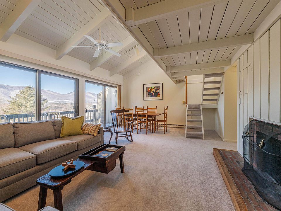 Breathtaking views of Mount Equinox await from the privacy of this three-bedroom, 2.5-bath end unit condominium, ideally located just minutes from town and the ski mountains. The top floor features a bright loft filled with natural light and a convenient half bath. The spacious living room opens to a private deck with stunning mountain views and includes a cozy wood-burning fireplace. The middle level offers three generously sized bedrooms that comfortably accommodate queen and king beds. On the ground floor, you’ll find an expansive bonus room and a private office that can easily be converted into an additional sleeping area. Ample storage is found throughout the home, including a large utility room with washer and dryer and a secure storage closet, a dedicated outdoor gear closet, and additional exterior storage. Firewood stays dry and ready under the private carport just steps from your door. Community amenities have recently been redone and include a pool, tennis courts, and basketball court—all set against the backdrop of beautiful mountain views.