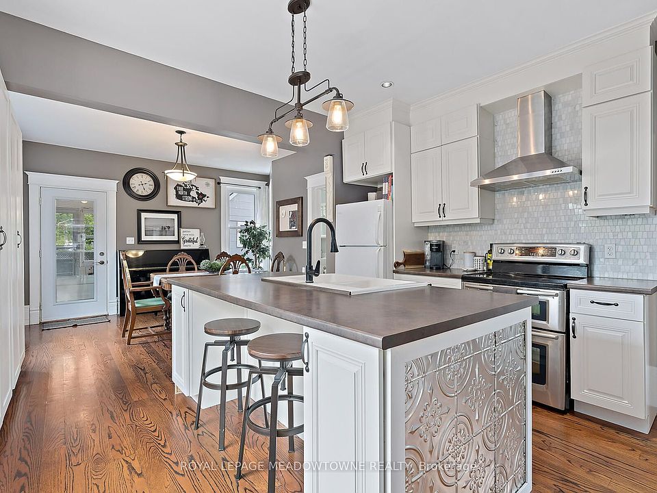 Exhibition Park is a Historic and coveted neighbourhood where Location = Lifestyle! Steps to Exhibition park and in the Victory School catchment. Enjoy short walk or bike to Riverside park or Downtown shops/dining& nearby trails along the Speed River. This is your chance to be a part of this charming & welcoming community. Big in heart & history. Charming home (with workshop) features high ceilings, beautiful trim, baseboards, oak hardwood on main and pine upstairs. New doors and handles. Windows through-out have been replaced. Kitchen with island, farmhouse sink & island installed in 2012 is now the hub of the home with centre island & open concept floor plan. So much storage is provided by the long pantry wall . Special care was made with consideration to provide character in keeping with the home. The 50 ft lot and 3 car parking are unique to the street. With it's extra width; there is potential to widen the driveway even further for additonal parking. Private yard for play and entertaining. The oversized 12x20 WORKSHOP with loft and power 2018( same size as a single car garage!) Note: it has been framed to add a garage door if desired to convert to a garage. 100 amp panel 2003, high efficiency furnace Nov 2022 , bathrooms renovated in 2019, shingles June 2017, softener owned-June 2023, The basement has been partially fiinished offering a recreational space for play/ TV/Office opportunity. Look no further than 14 Verney to start your next chapter.