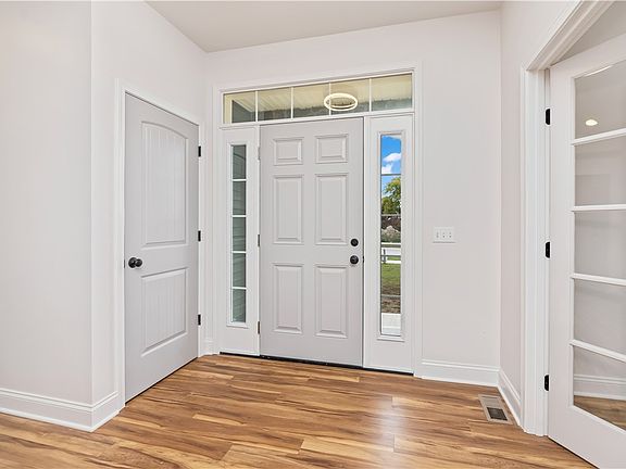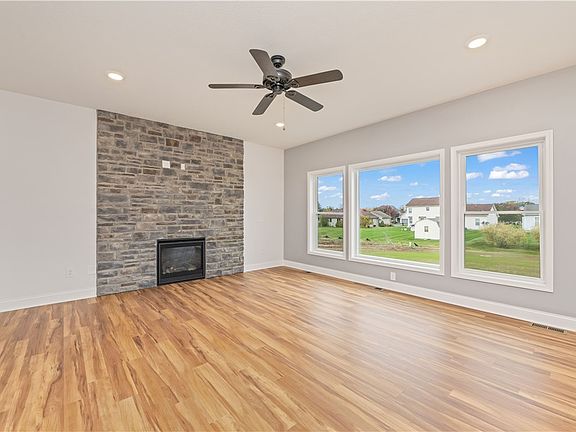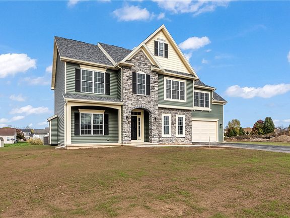 Incredible custom-built 4-bedroom, 2.5-bath home in Hilton, offering luxury, craftsmanship, and thoughtful design throughout! Step inside to find 9’ ceilings with recessed lighting and wide plank LVT flooring flowing across the main floor. The custom kitchen is a showstopper—featuring a 10’ quartz island with tons of seating, modern gray soft close cabinetry, and a huge walk-in pantry. Along with a spacious dining area perfect for gatherings.