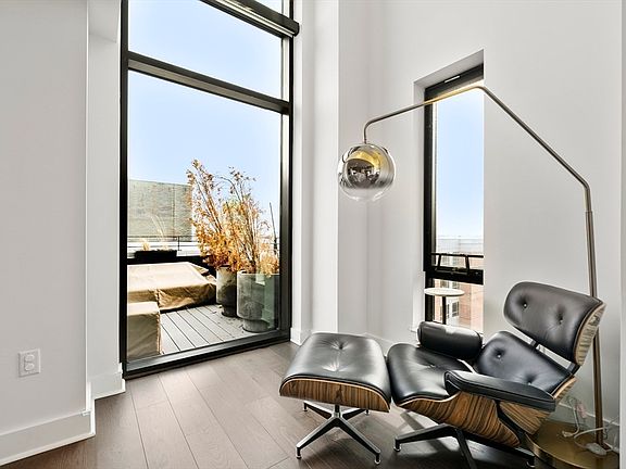 This stylish duplex city home pairs modern design with full-service amenities. The main floor features an open-plan layout with kitchen outfitted with Wolf and Sub-Zero appliances, floor-to-ceiling south-facing windows, and double-height ceilings. A flexible den off the foyer provides space for a home office, media lounge, or guest room, with a half bath and in-unit laundry for convenience. Upstairs, the primary suite offers en suite bath access, while a second full bath serves the guest bedroom. A private roof terrace spanning 440+ sq. ft. creates space for dining, entertaining, or city gardening. Building amenities include concierge and 24/7 valet garage parking, a fitness center, and easy access to downtown, Seaport, and South Station. Designed for those who appreciate modern style, flexibility, and convenience, this home offers elevated city living in a prime location.