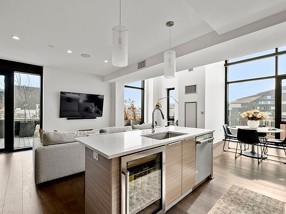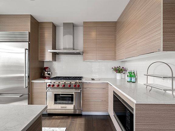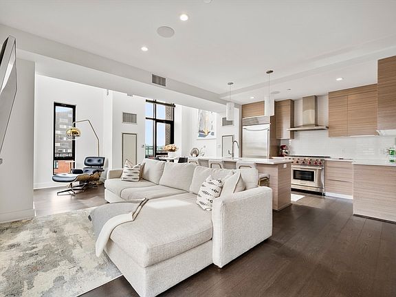 This isn’t just city living — it’s statement living. Soaring double-height ceilings, floor-to-ceiling south-facing windows, and bold modern design set the tone in this dramatic duplex home. The open-concept living space flows into a chef’s kitchen that blends Wolf and Sub-Zero performance with sleek, contemporary style — the perfect backdrop for dinner parties or quiet nights in. A flexible den off the foyer works as a media lounge, office, or guest space, paired with a half bath and in-unit laundry. Upstairs, the serene primary suite features custom storage and en suite access, while a second full bath serves the guest bedroom. The showstopper: a private 440+ sq. ft. roof terrace made for dining, lounging, and skyline views under the stars. With 24/7 valet parking, concierge, and a fitness center, this home delivers the ultimate balance of design, luxury, and downtown connection.