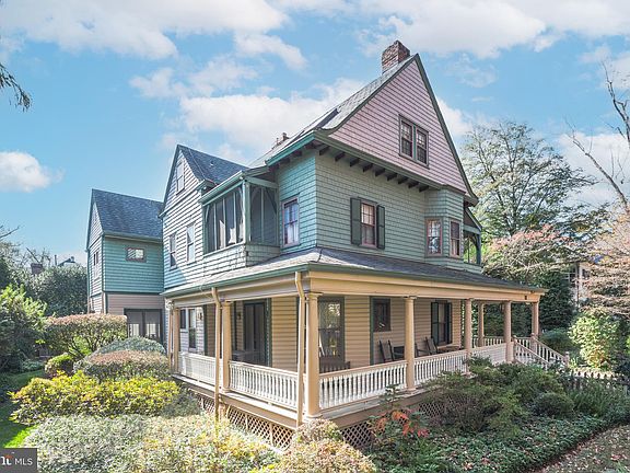 Nestled on a picturesque 15,000-square-foot lot, this 5500-square-foot stately home features a delightful wrap-around porch and a rare original three-bay carriage house. Inside, beautifully proportioned rooms showcase elegant period details, soaring 10+ foot ceilings on the first and second floors, and abundant natural light. With six bedrooms and three charming sleeping porches, this home offers both grandeur and comfort. The first floor boasts a grand entryway leading to spacious formal living and dining rooms, large family room, and three fireplaces. French doors open to a picturesque garden, creating a seamless indoor-outdoor flow. A butler’s pantry, mudroom with a back staircase, and an inviting kitchen enhance the home’s functionality. Ascending the graceful main staircase, the second floor features a primary suite with full bath, private study, and a serene sleeping porch. Three additional bedrooms and two full baths provide ample space for family and guests. The third floor offers two more bedrooms, another full bath, and a relaxing sauna. The expansive lower level presents endless possibilities for customization. With its desirable location, timeless character, and exquisite architectural details, this home is a rare opportunity to own a piece of Chevy Chase Village history.