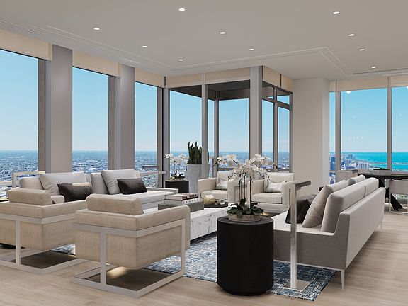 Welcome to One Chicago ? 77 visionary homes in the sky, starting on the 44th floor, with spectacular city and lake views. Merging the exclusive neighborhoods of the Gold Coast and River North, One Chicago offers a whole new perspective on city living, just blocks from the lakefront at State and Superior.The covered motor court with dedicated valet marks the beginning of an elegant arrival sequence. An exclusive door team is there to welcome residents and guests to the hands free elevators, which lead to residences with secure Latch Hardware entry systems.A sense of light and space in the open plan living area reveals awe-inspiring views and finishes, such as wide plank European oak wood floors, custom stepped ceiling details and full height windows. A custom-designed O'Brien Harris kitchen lies at the heart of each residence. Generous dimensions and natural finishes allow for a peaceful sleep in the bedrooms, equipped with Ketra circadian lighting. Clean lines and luxurious finishes are the hallmark of every bathroom. Primary baths are sleek and flawless, offering floor-to-ceiling slab porcelain, custom-built vanities with lit mirrors and Kalista fixtures. Oversized showers are complemented with cantilevered benches, recessed storage niches, fog-free shave mirrors and effortlessly controlled with Kohler's DTV electronic, programmable system.Generous setbacks allow for uniquely large terraces, including the private ownership amenity deck. Residents will enjoy an exclusi