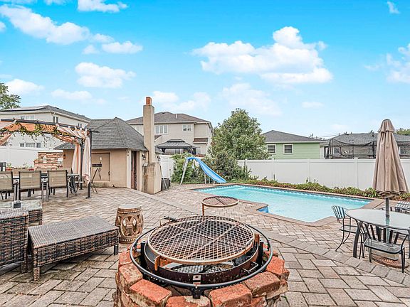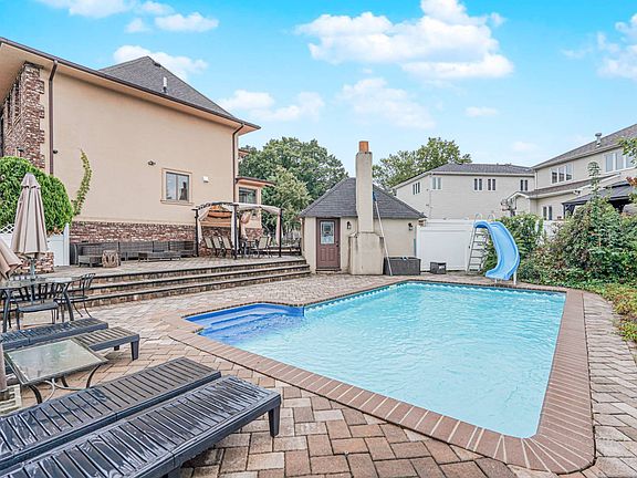 Custom one Family Home on a large spacious lot. Property includes: In-ground pool, pool house with shower and bathroom, outdoor kitchen area, backyard pavers, three level home, with 4 bedrooms, 3 bathrooms, open kitchen with center island. Top notch appliances throughout. Washer/Dryer room, Radiant marble tile flooring throughout the entire home. In door Garage, real wood staircase. Wood burning fireplace. Must see custom home. appointment only