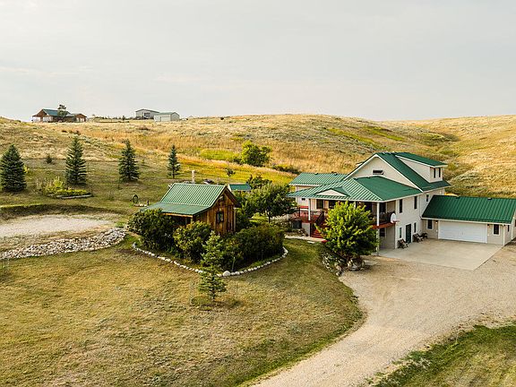 Experience peaceful country living on this 7.4 acre property featuring a comfortable 5 bedroom, 3 bath home with attached 2car garage. The acreage includes 3 parcels. Enjoy tranquil privacy, open space, abundant wildlife, & beautiful views of the Piney Creek Valley & the Big Horn Mountains. Settled on the historically rich Sullivant Hill, this property enjoys mature apple trees, lilacs, and abundant lilies. The custom built home has plenty of space and natural light throughout. Pella windows are wood int/clad ext. Floors are bamboo/hardwood, ceramic tile, and carpeting. Ext walls are all cement poured making this a very quiet, stable and energy efficient structure. The roof is standing seam metal roofing that was replaced in 2012. The house has 2 furnaces. The main forced air high efficiency furnace was replaced in 2024. Air conditioning unit and heat pump provide comfort for any weather conditions. Upper floor includes the master bedroom/bath & dressing area & loft with high vaulted ceilings overlooking a sitting room below. Stair railing/banister are oak. The main floor includes 2 spacious bedrooms, a linen closet, coat closet, fully tiled bathroom, sitting area, & a large kitchen with custom cabinets and stone countertops with eating area. The large pass throughs allow for easy movement to the elegant dining/living room (24' x 32') which features chandelier lighting & vaulted ceilings. On this floor is a music/sunroom with a gas fireplace w/remote start. Outside there is a large covered porch (14' x 32') & wrap around deck. This is a great place for sitting, grilling, entertaining. The lower level has2 bedrooms, a TV/ Family room, bathroom , 2 offices , mudroom and locking storage. Area under deck is great for additional storage or carport. Attic storage above garage. Property includes guest cabin perfect for visitors or additional living space. All measurements are approximate.