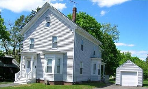 This gray lady is a diamond in the rough. If you are not afraid of cleaning, painting, and some finish carpentry work this home is for you!! And you will be rewarded with some unique architectural features such as bay windows, large moldings around doors and windows a curved stairway with a mahogany railing, curved interior walls, and large windows making for sun lit rooms. This home sits nicely on a corner lot with almost a half-acre of flat cleared land. What a back yard, and a one car garage too. This two family's features are 8 rooms 3 bedrooms, 1 full bath over a 5 rooms, 2bedrooms 1 full bath apartment with all separate utilities. Unit 2 has a bonus of a finished heated attic great for a teenage suit or a combination office and exercise room.
