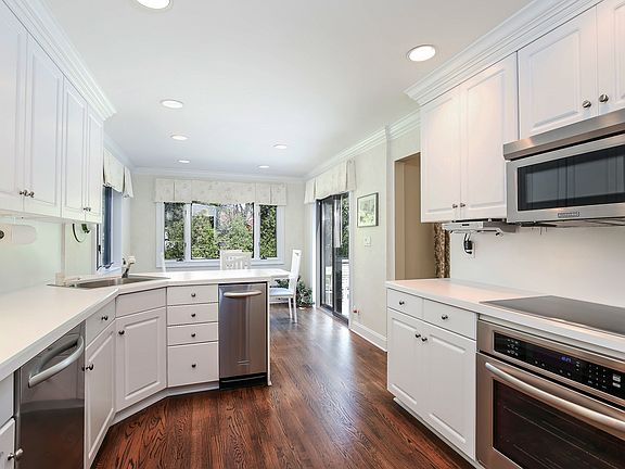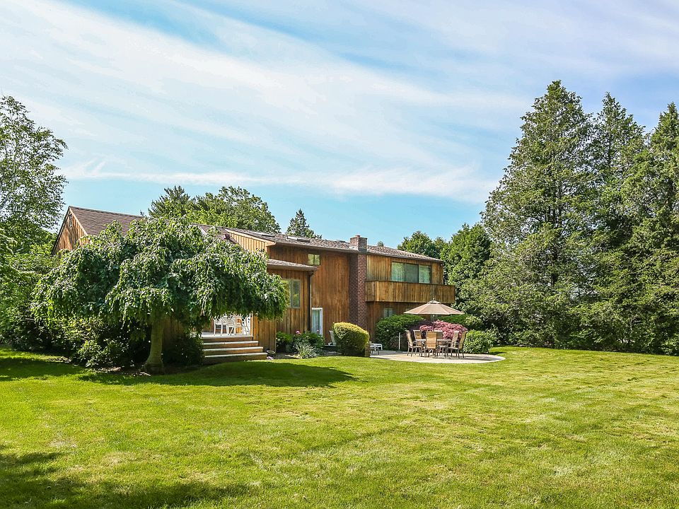 Beautiful and bright four bedroom house on a magnificent park like property with patio and deck. Open your sliders onto a juliette balcony and enjoy the view from your master bedroom with en-suite bath. Closets are plentiful with two walk-in and one wall of closets finished with interior cabinetry . Updated and expanded gourmet kitchen has a large eat in area with panorama views of property with sliders to deck. The spacious living room and dining room boasts cathedral ceilings. Family room is filled with light from sliders to yard. This is the perfect home for indoor and outdoor entertaining, A must see.