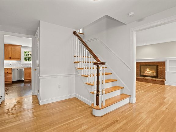 Beautifully Maintained! Farmer’s Porch center-entrance Colonial sited on cul-de-sac in desirable Woodcliff Estates. Fabulous Open Floor Plan, wood floors & trim throughout. First Level includes inviting Foyer, Formal LR & updated SS Kitchen wrapping into Breakfast RM w/custom cabinetry & FP ("LR/DR Combo"). Also find a Formal DR & Family Rm w/cathedral ceiling - both w/ French Doors to Deck overlooking lush woodlands, & a delightful beadboard trim Mudroom Area w/ separate Powder & Laundry Rooms – to complete First Level. Access Full Walk-Out LL from open staircase in FR for sun-splashed space for games/home gym, & Custom Shelving in unfinished area, all offering endless options. Second Level includes Primary En Suite BR, 3 Secondary BR's (including oversized BR w/ vaulted ceiling), Office & Hall Bath. Charming brick walkway, stone wall & landscaped grounds. A short walk to Shaw’s Plaza, close to Medfield Town Center, I-95/trains/Amtrak. Don't miss! Some Photos Virtually Staged.
