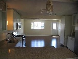 Beautifully remodeled oversized ranch with garage. New: granite kitchen w/stainless steel appliances, bathroom w/jacuzzi tub, windows, heat, hot water, floors, landscaping. Master bedroom with walk-in closet. 3 year home Warranty!