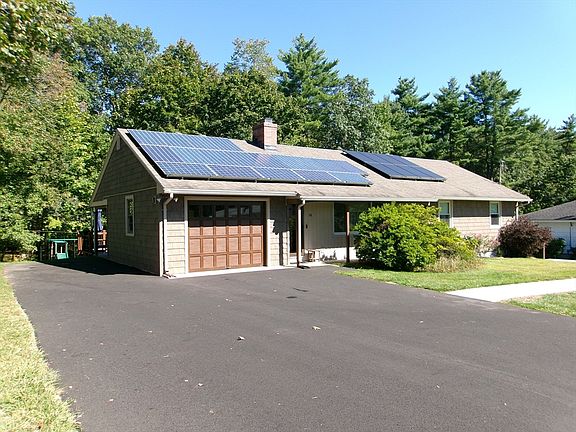 You will love this beautifully maintained and updated home in a wonderful neighborhood close to schools, shopping, and the Mass Pike. The two home offices make it easy and ideal to work at home, and it's a quick commute if you need to go! The outdoor dining area extends the living space, creating a perfect setting for enjoying meals The yard provides ample space for outdoor activities, featuring a large deck and patio that invite you to relax and unwind while taking in the woods view. And, an abutting woods trail leads to a local bike path. A hop and a skip to many outdoor attractions, including the pristine Quabbin Reservoir. Energy efficient features include solar panels, mini-splits, newer windows and doors, and added insulation. Protected gutters.