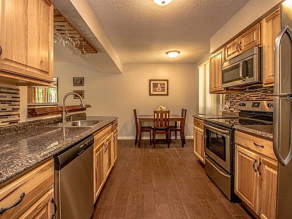 Gas heat in this Woodland Pines unit with a totally remodeled kitchen & new bathrooms. Enjoy this 3 level townhouse with master suite upstairs with deck and full bath, lots of space in main level with stone fireplace & large 30' outside deck on main level, three bedrooms & full bath on lower level. Fireplace and 2 decks. Natural wood and custom window treatments. X-Country ski trails right on property & close to ski & shopping areas.