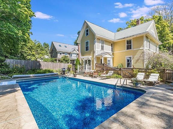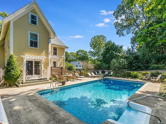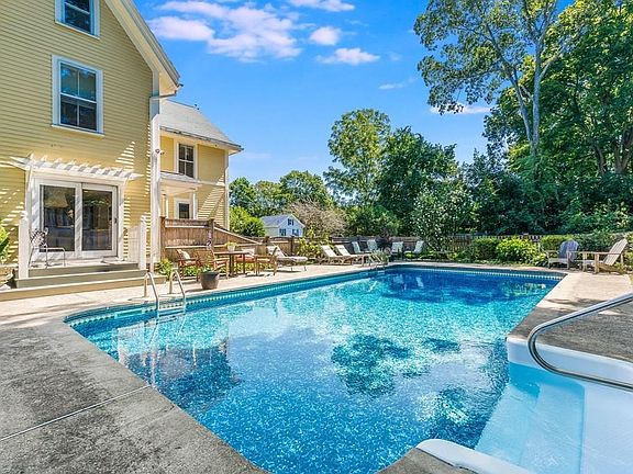 Looking for an amazing house that is full of charm and Sun-drenched with natural light? You'll love the Farm House flair decor with a white kitchen that any cook would love to call theirs. This gem is located on a tree-lined street near the Downtown of the quaint Town of Merrimac and situated on a quarter acre level lot. Gather around the kitchen area while meals are being prepared, host a dinner party in the dining room, or relax in the Livingroom by the fire. There are four bedrooms, all located on the second level and a fifth room perfect for an office, craft or music room. Need extra space, the unfinished walk-up attic will accommodate that too! Move here just in time for the warm weather and take your entertaining to the outdoors where you'll have a huge patio that surrounds your inground heated pool boasting a newer liner. Come see for yourself this special house, it's a perfect stay, play vacation as you work from home.