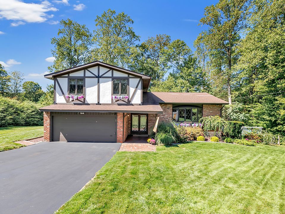 This beautifully maintained 3-bedroom, 2.5-bath Multi-Level Contemporary Tudor offers timeless character, thoughtful updates, and a layout designed for comfortable living and entertaining. The gourmet kitchen features beautiful stonework accents, double ovens, a dedicated coffee bar, and hardwood floors, flowing seamlessly into the dining room and living area. A spacious family room leads to the four-season sunroom with warm wood paneling and large windows, overlooking the private, level backyard. Outdoors, enjoy an oversized deck, an above-ground pool, lush landscaping, and vibrant seasonal flowers, creating the perfect setting for relaxation and entertaining. Modern updates include Pella and Andersen replacement windows with motorized shades, a new LG ductless split heat pump (2024), updated 200-amp electrical service, central vacuum, and a new washing machine. The owners' pride of homeownership shows throughout. Every repair and renovation has been thoughtfully completed through proper channels with permits and the property has been consistently well cared for. Located in a quiet, friendly Shelton neighborhood close to schools, shopping, and restaurants, this move-in-ready home combines privacy, charm, and convenience in one perfect package.