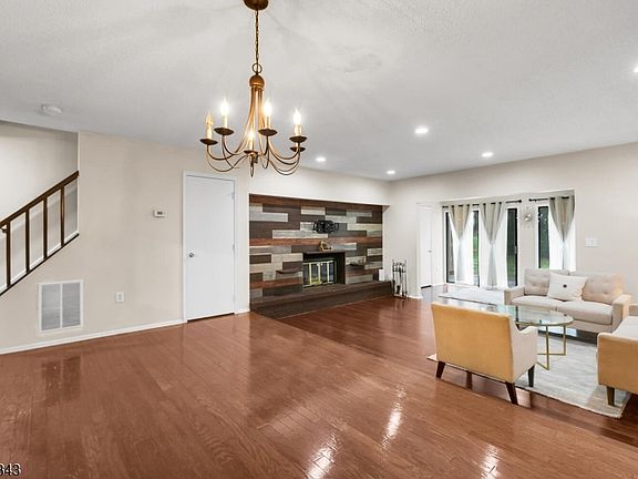 Welcome to this thoughtfully updated 1,780 sqft Model 300 Townhouse in the highly regarded Society Hill community of Basking Ridge. This 2-bedroom, 2.5-bath residence offers a bright and open layout featuring a welcoming living room with a beautiful wall-to-wall brick fireplace and a sunroom that extends to a custom slate patio - an inviting space for outdoor enjoyment.The eat-in kitchen includes oak cabinetry and a suite of New Appliances: Refrigerator, Dishwasher, and Washer/Dryer (all Oct '24, each with 2-year warranties), complemented by a reverse osmosis Water Filter installed in Aug '23. Additional recent improvements include a New Water Heater (July '24) and New Wooden Flooring throughout (June '25, 1-year warranty). The HVAC system was replaced in 2017.Upstairs incudes both bedrooms with en-suite baths and generous closets and laundry space. Assigned parking space #11-C adds convenience.Residents enjoy a 43-acre, well-maintained community offering a Pool, Clubhouse, Tennis courts, Playground, and scenic Walking and Biking paths - all within walking distance to Pleasant Valley Park and close to major highways, shopping, and dining.A beautifully maintained home combining comfort, quality, and a premier Basking Ridge location.